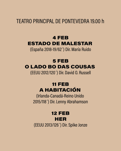 xoves, Xaneiro 29, 2026 - 13:15 a mércores, Febreiro 11, 2026 - 13:15A próxima semana celebrarase en Pontevedra o ciclo de cine e saúde mental no Teatro Principal. Data: 4 e 5 de febreiro Horario: 11:00h e 12:00h. Programa